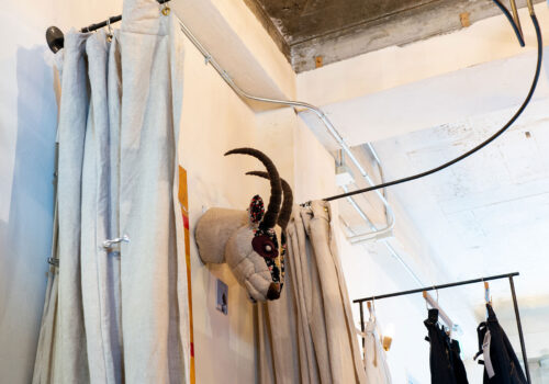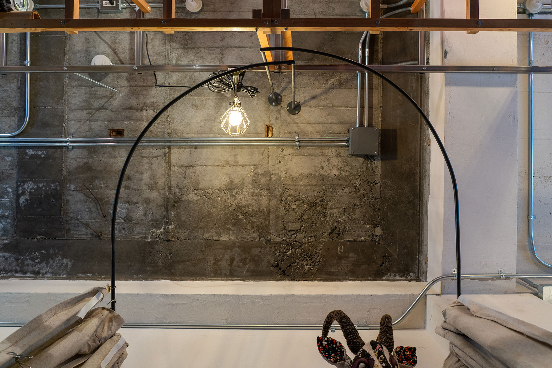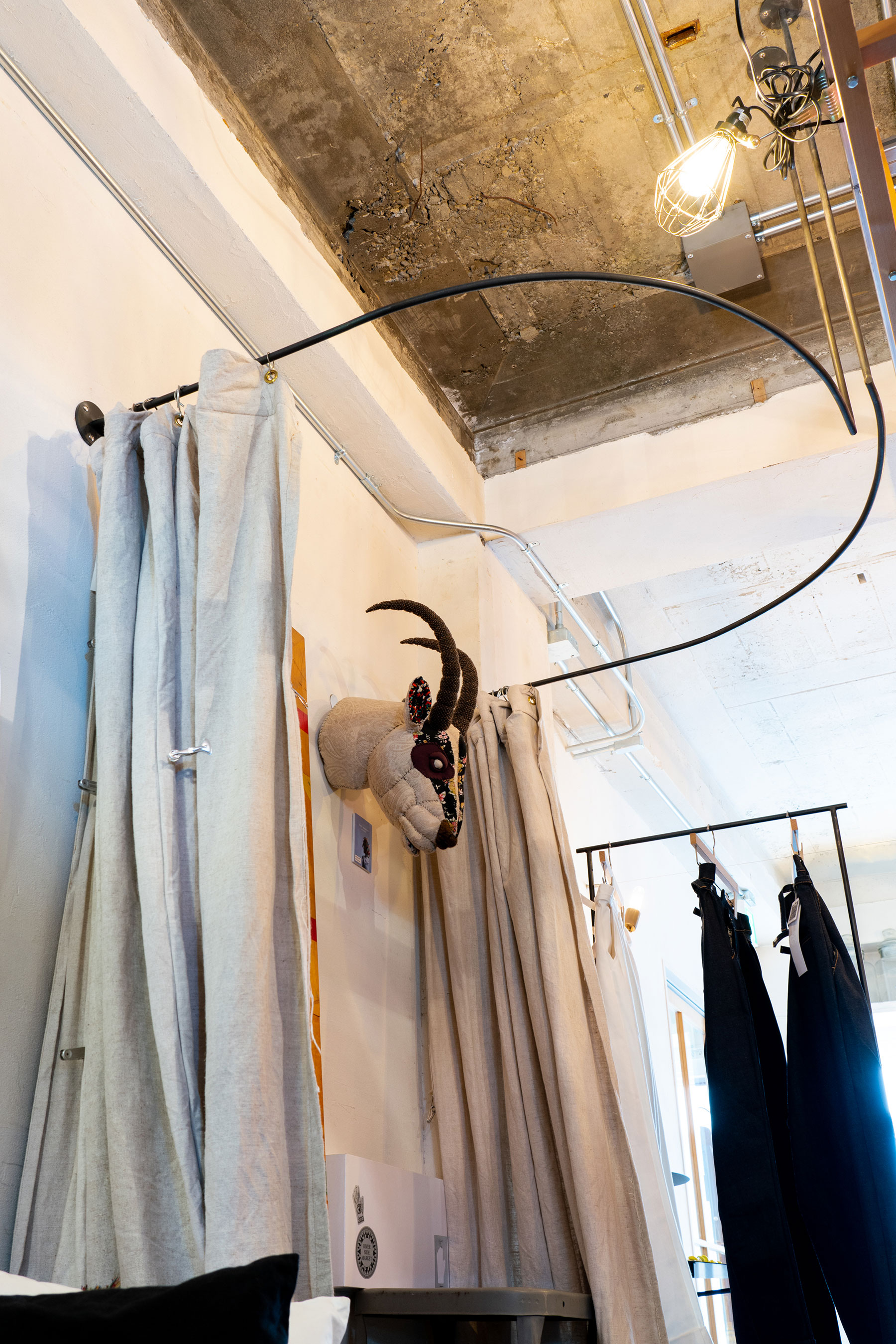 ee 様:アパレル・衣料店舗 静岡県浜松市内製作・施工:更衣室フレー ム 鉄 Φ13丸棒 曲げ加工 仕上げ:黒皮素地 クリア塗装仕上げ