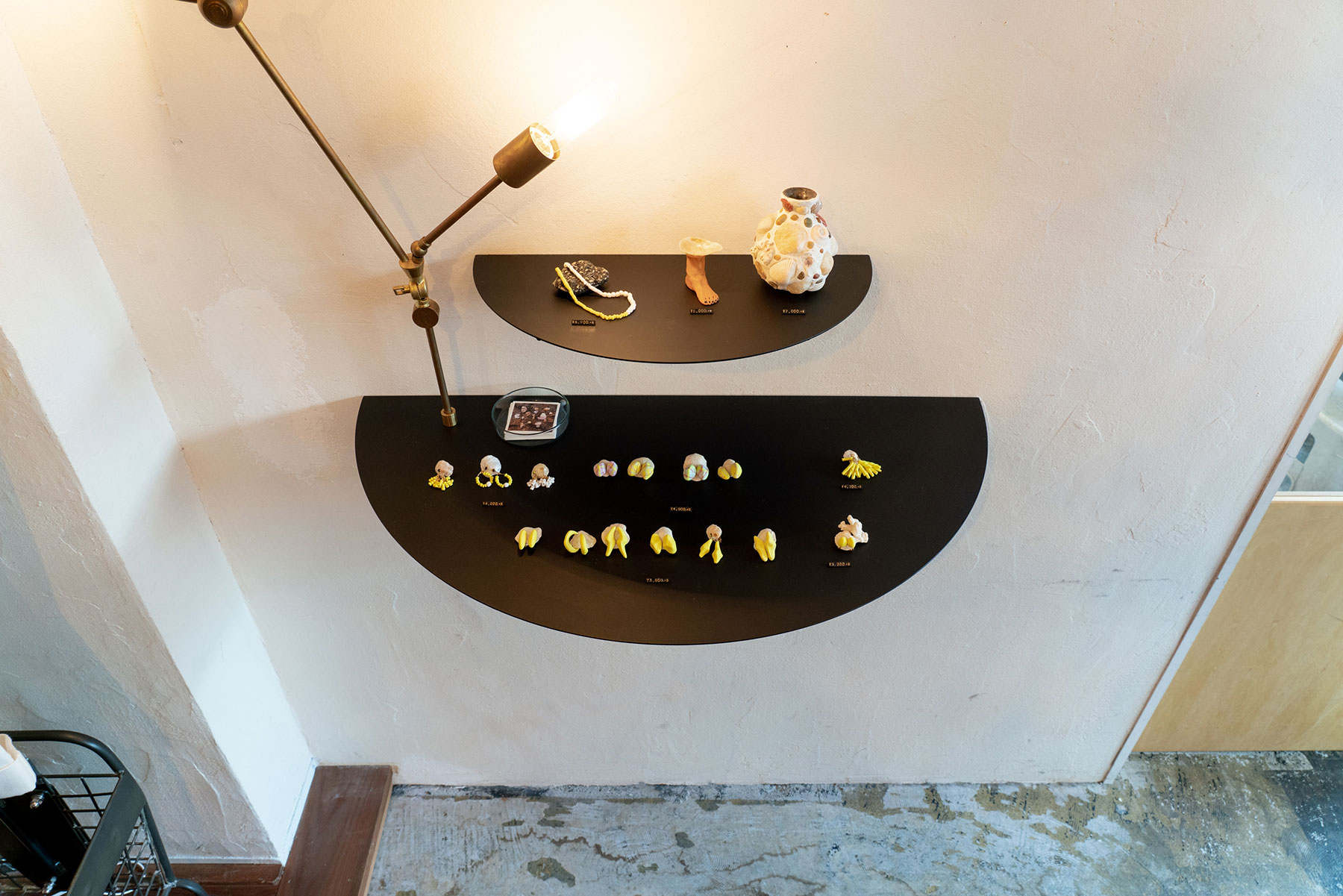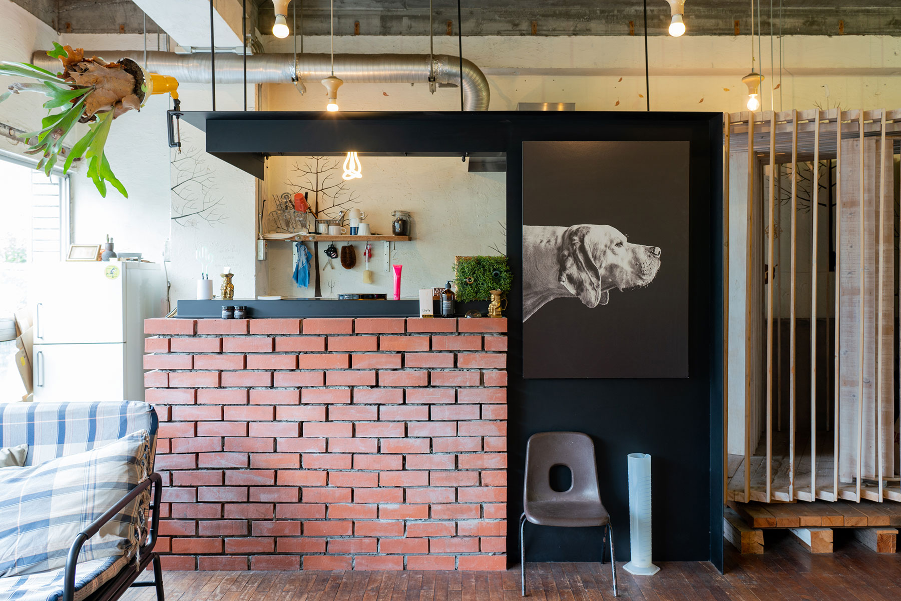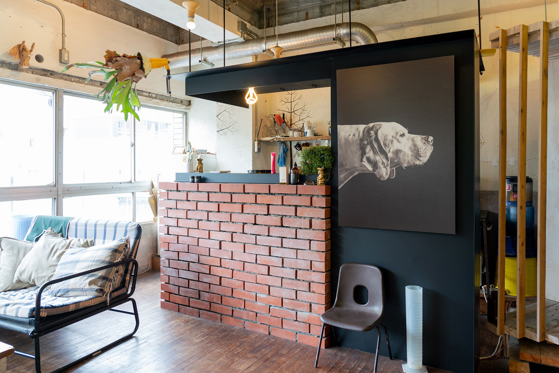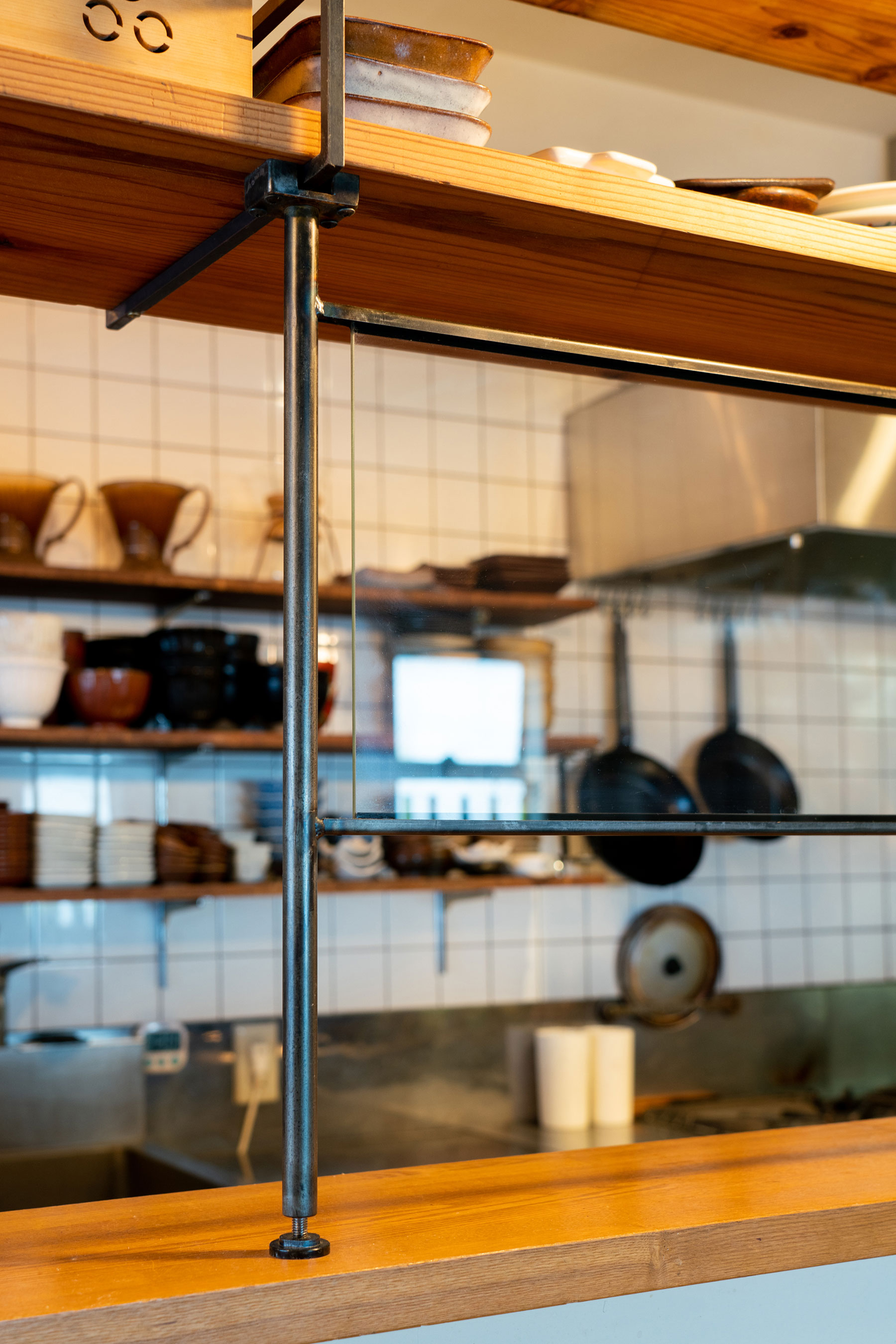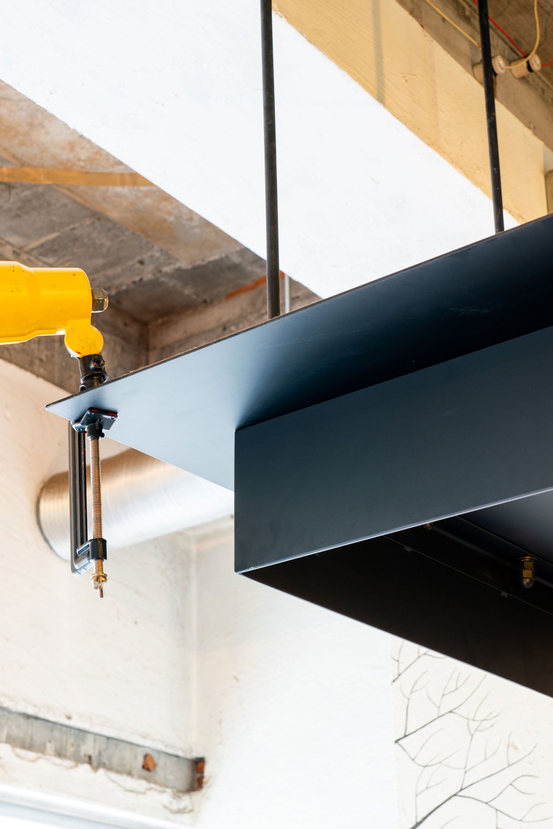 ee 様:アパレル・衣料店舗 静岡県浜松市内製作・施工:什器 仕様:天板 鉄 t2.3板材、リブ材 Φ13丸棒 仕上げ:全艶消し黒塗装